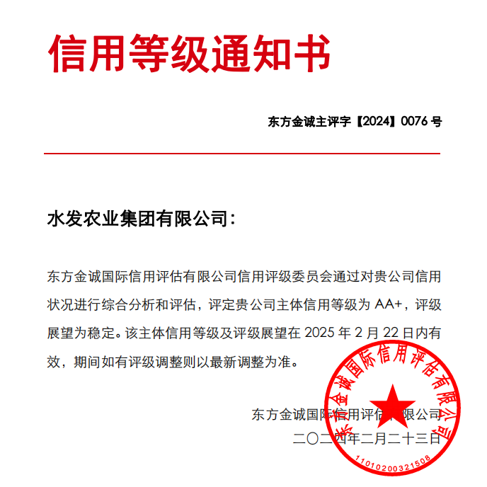 水發(fā)農(nóng)業(yè)集團(tuán)榮獲AA+主體信用評級(jí)